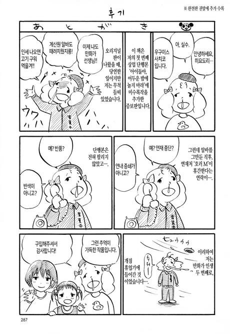 솔직히 신작보다 후기가 더 정성이 들어간 느낌이 들었다... 물론 신작도 나름의 개성이 있고, 작가가 새로운 시도를 하려는 의도가 보이긴 하지만, 개인적으로는 후기만화가 더 재밌다.